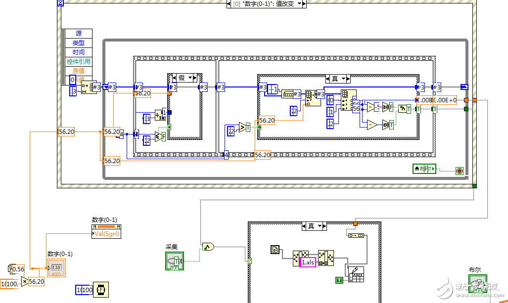 要求按停止按钮后for结构里的程序(就是数据分析)就停了,数据分析需要用移位寄存器 ,那就需要用while或for,但是while的停止按钮要用局部变量,和我要把 这个程序放到 实验的那个总程序 里while的停止机械动作有冲突。所以就用了for,但是N又不确定了。所以干脆设了一个最大值