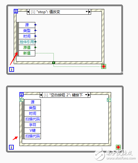 第一张图是《LabVIEW8.20程序设计从入门到精通》中的例子,里面的“事件数据节点”的选项为什么与第二张图中我用2015版生成的选项不同的?右键选择:“选择项”里面的内容也不完全相同,例如没有“新值”选项。我觉得应该是与前面板的按键设置有关,但是又不知道该如何设置。
