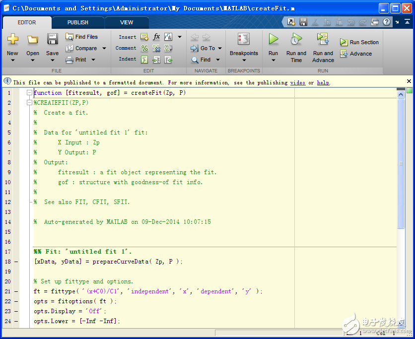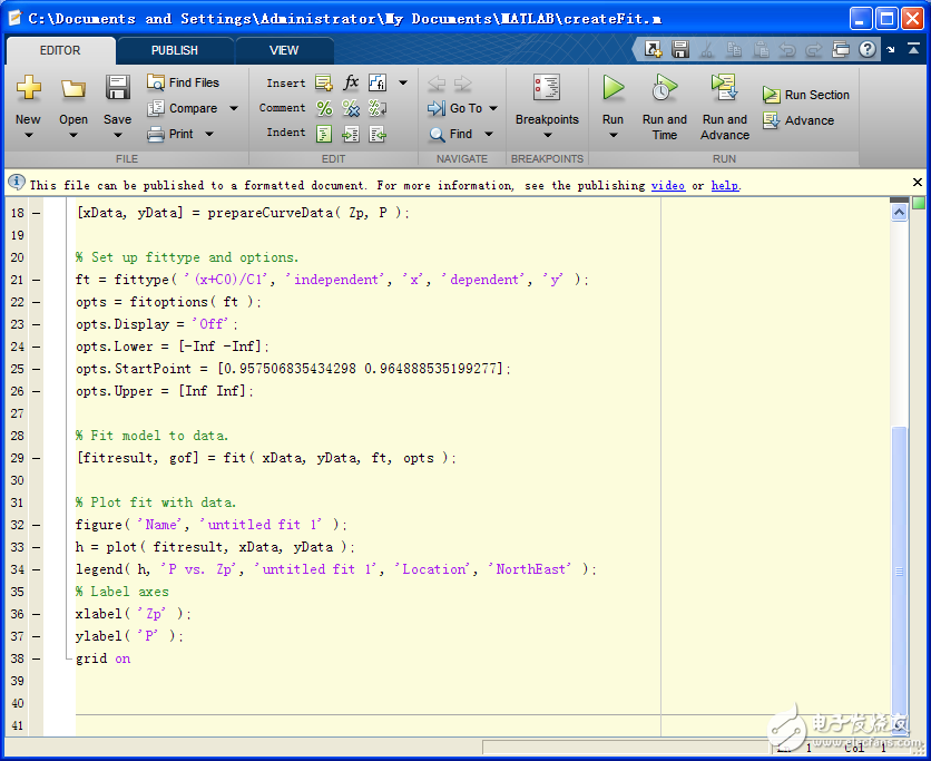 程序是用matlab的cftool的File-->Generate Code生成的。