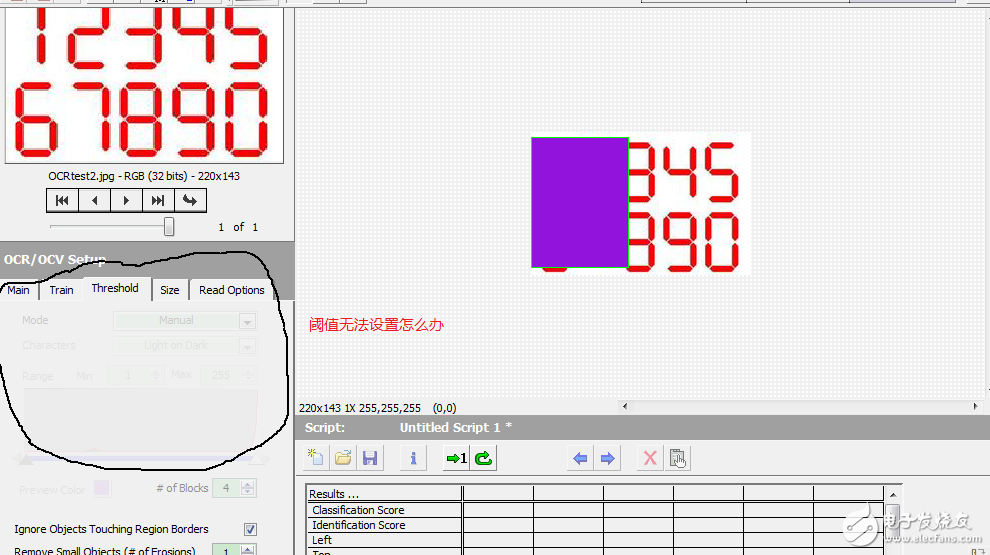 请教Vision做OCR识别数字,可以训练,但训练好的对训练样本处理出现问题,见图片阈值无法调节,求教_(:зゝ∠)_