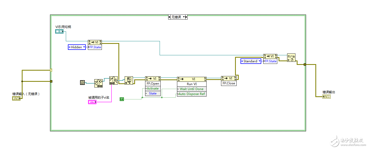 在主VI调用子VI时,此时希望主VI前面板隐藏,显示子VI前面板,而子VI调用结束后希望子VI关闭,主VI前面板显示出来。即保证程序运行过程中,只有一个窗口显示着,就像window中打开文件夹和返回上层文件夹一样的效果。