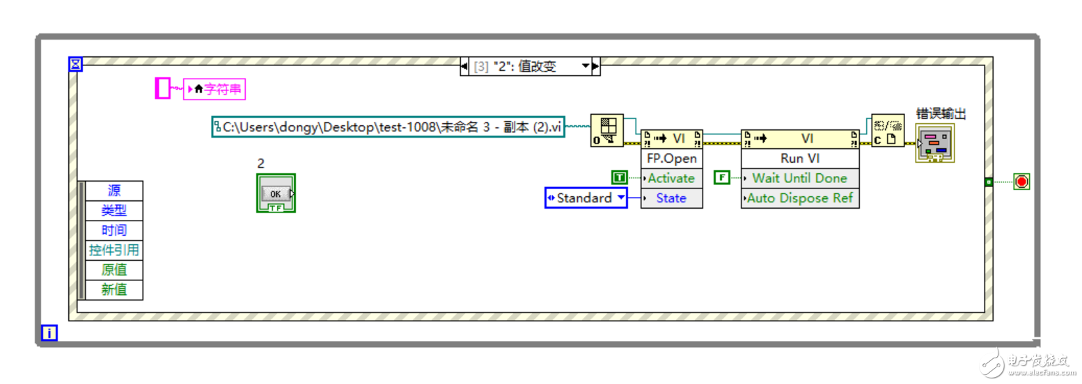 这是我把两个事件合并了,可是出现一个问题,点击1或2按钮都会弹出两个窗口,我想做的是点击1弹出对应1的窗口,点击2弹出对应2的窗口。并且这两个被调用的子vi都能同时独立运行
