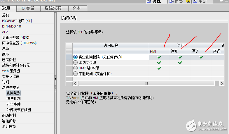 PLC CPU 内的访问安全级别对应的勾选择了没有