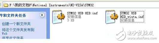 我们选择第一项,安装生成的inf驱动程序。最后,我们点击“finish”之后,STM32 USB HID驱动程序就创建完成了,并已经安装到电脑中了。生成的inf文件有电脑的以下目录,同时有XP和VISTA系统的驱动,如下: