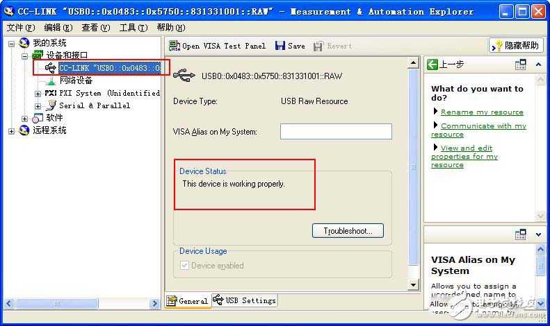 小编,按照你的方法,已经可以识别usb设备,但是在NI-MAX中的测试中,出现了如下问题,能帮忙看一下吗?谢谢!