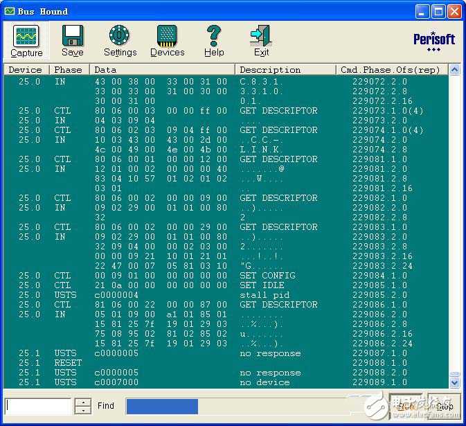 总结:采用基于NI-VISA驱动的USB接口应用系统的设计非常容易,开发难度低,对开发者的要求不高;开发出的系统稳定可靠,即使对Windows编程不熟悉的人也可以开发出USB应用系统,它提供了另一种开发USB驱动应用程序的捷径。另外我发现Bus Hound这个工具挺好的,可以查看USB通信的细节: