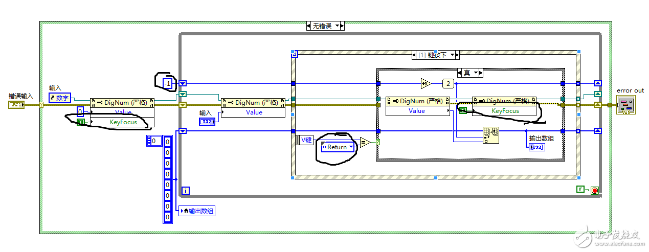 如图所示,我想通过回车键一个一个输入数据到数组中,并且如何使用输入的键选中属性节点 使我只通过键盘就能完成操作移位寄存器不要使用“未连线时使用默认值”,直接把线连起来。