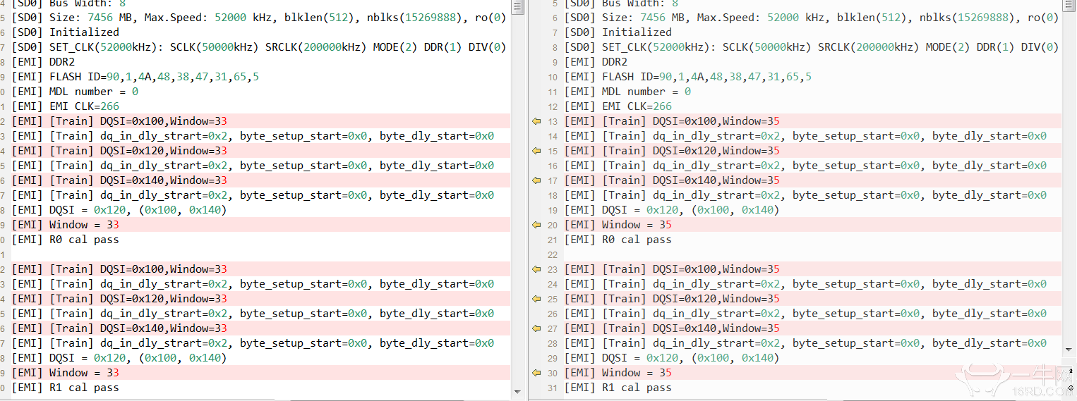 出问题的log和正常的log比较如下:左边是正常的,右边是有问题的