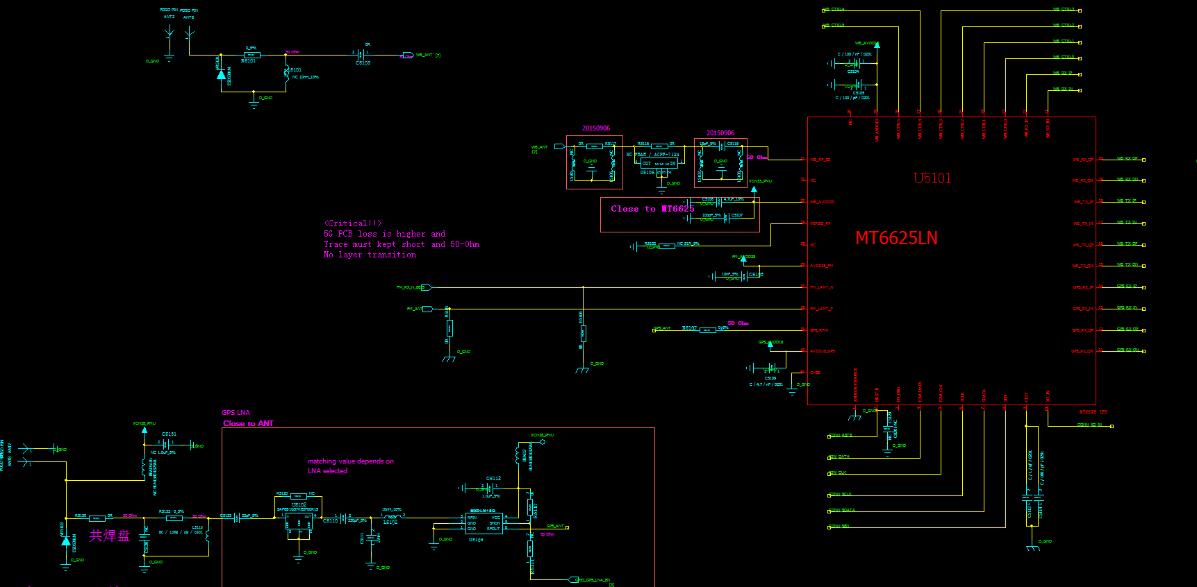 看你PCB很有可能跟楼下说的VBUS干扰有关,把VBUS部分的RF输出断开,然后在没有被VBUS压到的部分焊接导线看搜星情况