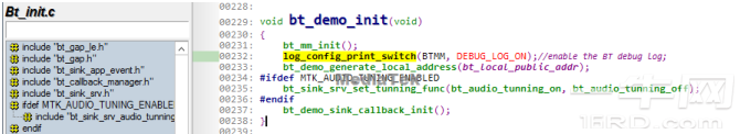 (二)\project对应的bt_init.c中,开启BT Module DebugLog打印: