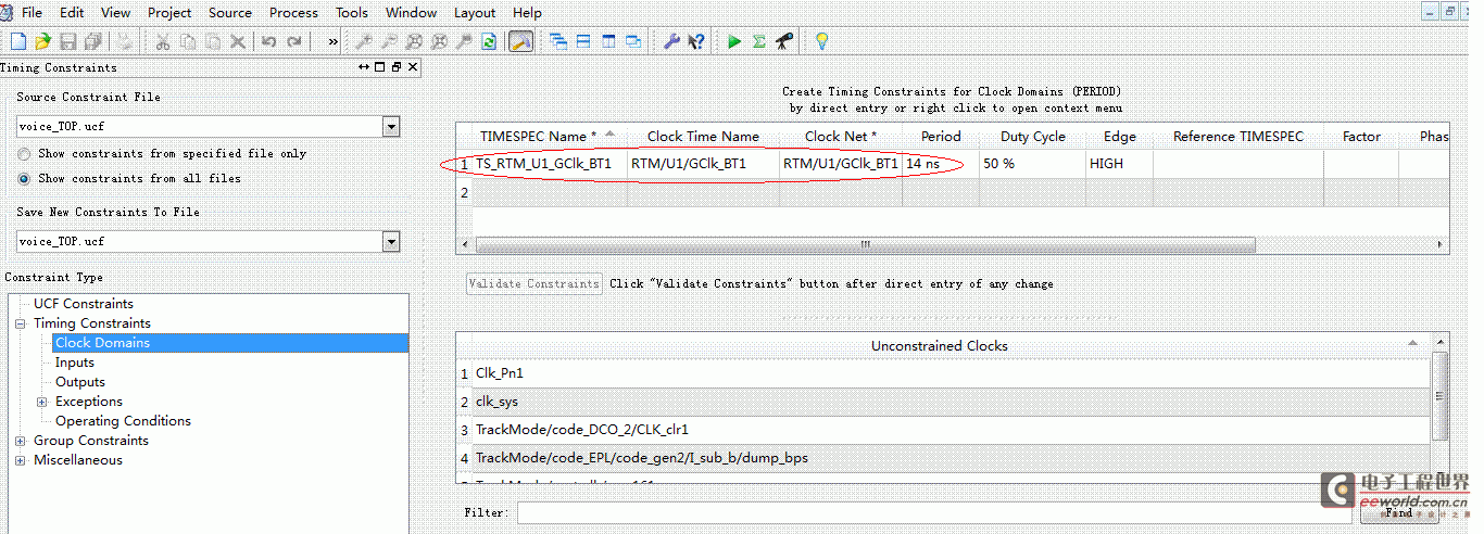 我在后仿前对最主要的时钟加了时间约束,时钟为68M,约束限制其PERIOD为一个时钟周期以内(14ns)