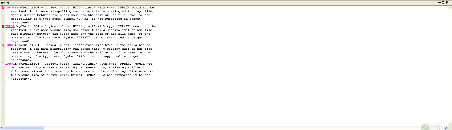 在xilinx上的用其存储空间,不知道为什么出现如下错误!求高手指点!