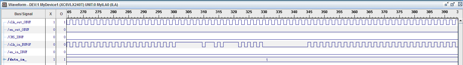 c. 【补充】我现在的数据会出错,主要原因在于en_in会产生小脉冲(本不应该产生),尤其是在en_out有效期间,en_in产生小脉冲的情况特别严重(chipscope波形看起来类似于是时钟),我尝试用两级D触发器来过滤这个毛刺,但是效果不好,我想是因为毛刺过于多的原因。