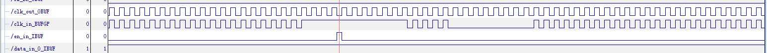进一步确认:在FPGA2中把clk_in和clk_out引脚挑换,en_in的短脉冲还是只和clk_in信号有关