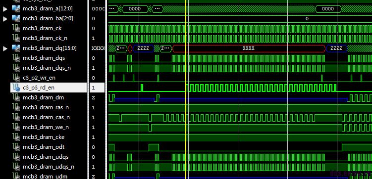 我在仿真赛灵思spartan6 xc6slx100 连接DDR2时,用IP核生成的代码进行仿真时,我发现在读数据的时候,DQ总线总是为无效状态。请问这是怎么回事呢?有知道的吗?