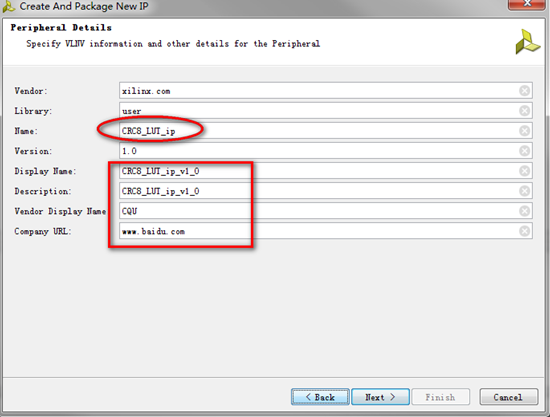 5)添加IP核的详细信息: