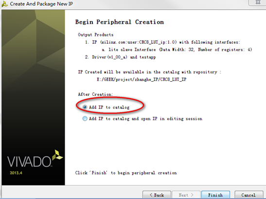 3)点击finish后,在TOOL下拉菜单选择Create and Package IP