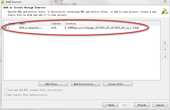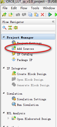 9)在flow navigator栏中选择 add aoirce 添加之前自己编辑的CRC算法的.v文件,即CRC8_LookupTable.v