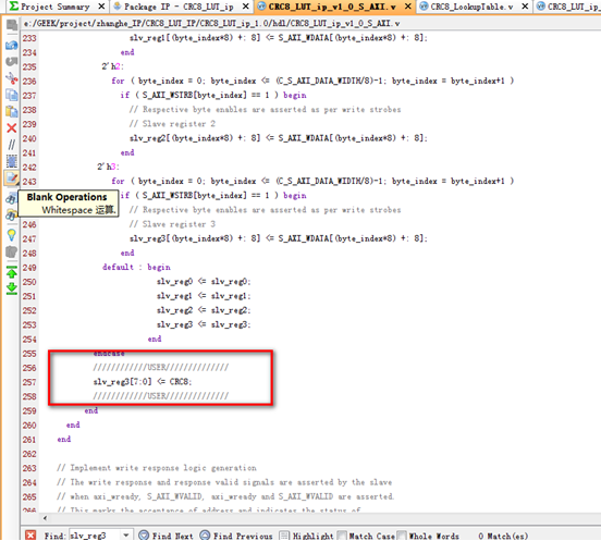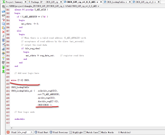 由于slv_reg3是一个寄存器型的,所以要定义一个wie型变量CRC8,再连接到slv_reg3,不然综合会出错。