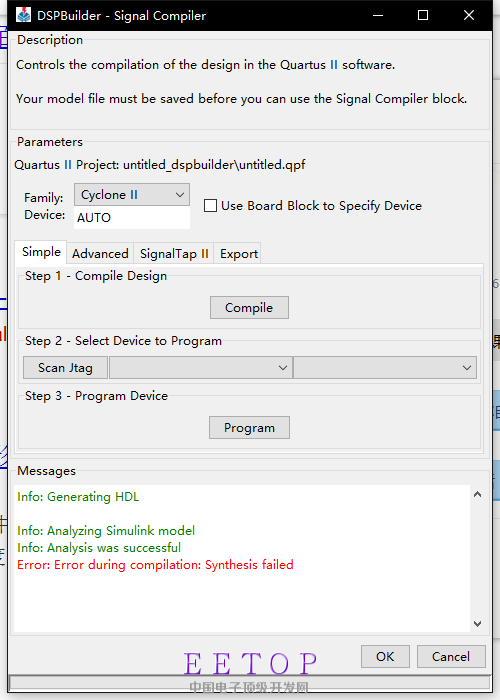 Error: Error during compilation: Synthesis failed