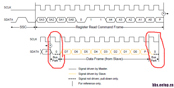 我想问的是,在slave没有SCLK可用时,怎样去检测SDATA呢。
