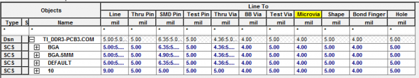 请教下,为什么line到thru via等不同对象的距离要设置成不同