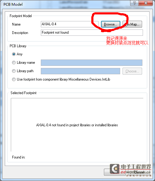 我记得原来只用在封装的选项里面点浏览, 然后更换封装就好了。
