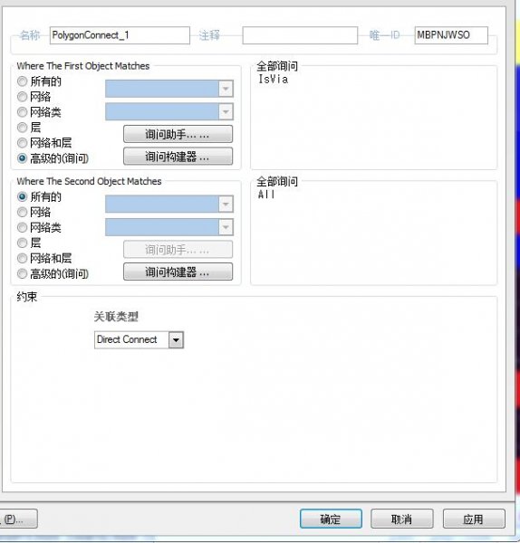 另一个在高级查询里输入“IsVia",连接方式设置为直连