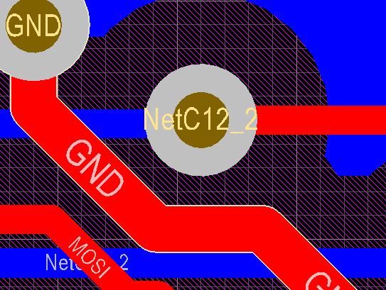 为什么同一个网络的练不到一块找到解决办法没有。比如GND管脚,拉出来一段线再敷铜的时候敷铜就把这段线让开了。,不知道你遇到过没有
