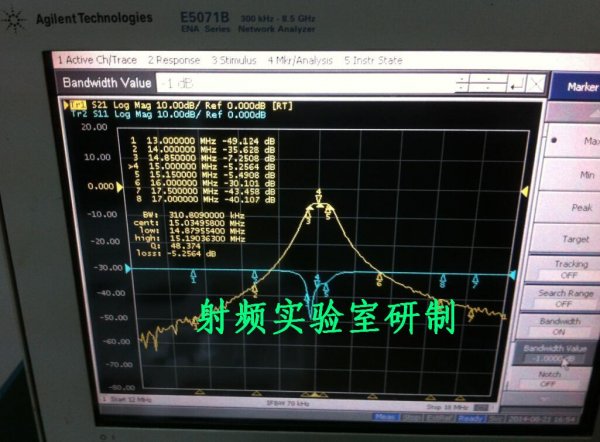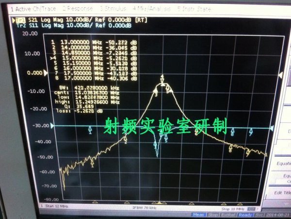 测试结果-1db带宽和仿真的几乎完全一致。只是差损为-5DB左右。这个是正常的,不可避免的。毕竟是LC的滤波器嘛。。