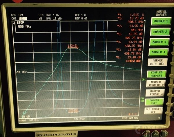 带内波动0.1db(带宽比较窄)