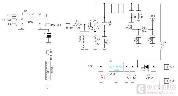 附图是一个无线发射电路,一直对里面的一个电感L1 的具体作用不是很清晰,拿出来供大家讨论,共同提升。售价: 1 枚芯币 [记录] [购买]