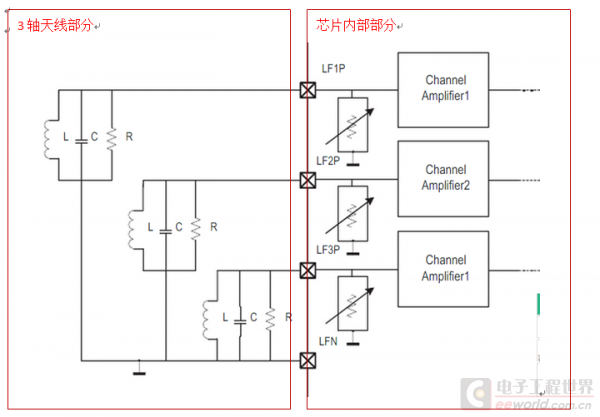 125khz读卡器,原先用的125khz的3轴磁芯线圈。芯片可以单独只使用天线的1路线圈输入。每一路1mv灵敏度接收。