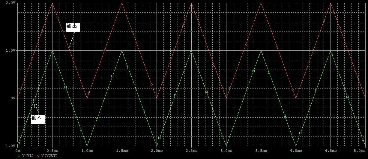 2、若R2视为开路,输出与输入不是应该相同吗?为什么仿真结果会有1V的直流之差。