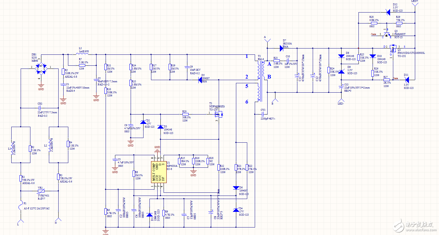 如下电路图是LED驱动的输出端,其中MOS的S极对地电压波形如下,电压会有一定的下降,使LED灯的亮度会呈现亮了又暗一点,请各位大侠看看该如何使S极电压稳定上升成一条直线波形。