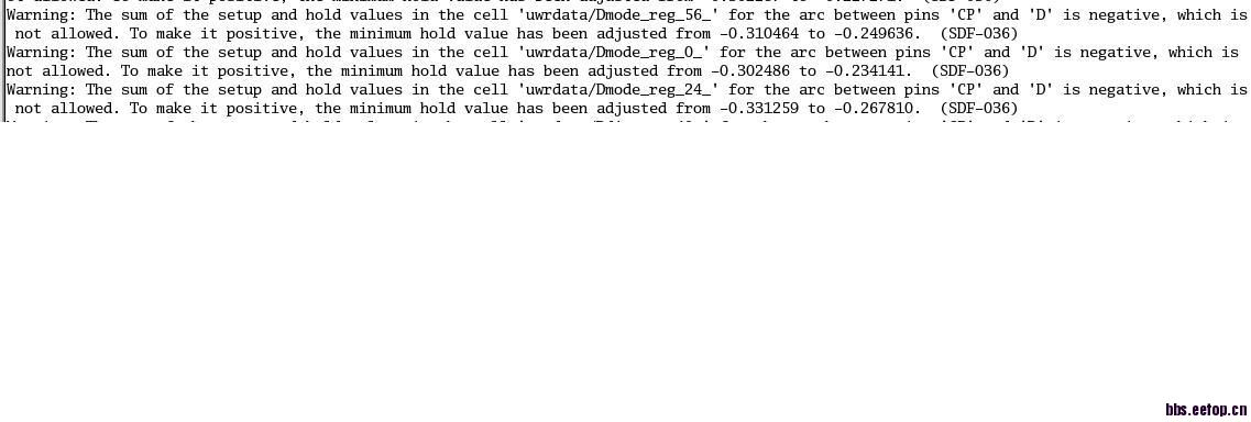 是的,关于这个解释,PT是定义的,CP到D的timing arc上的setup和hold之和为负。这是这里报错的主要地方。这离的warning全部是对寄存器,也就是说实际上的寄存器的setup和hold之和不应该为负的,但是它的setup或者hold可以为负,这也是可以理解的。