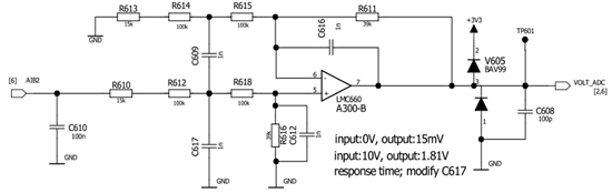 (1). Schematics: from below , you can see situation of application, AIB2 is input analog voltage :0-10V, VOLT_ADC is output voltage :0-1.81V.