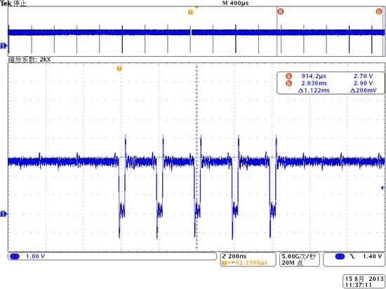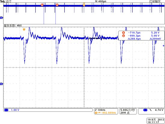 当然,我按照datasheet上的接法以及推荐的电阻值接了,但是效果跟以上的图2和图3还是比较类似,好像一直在震荡一样。