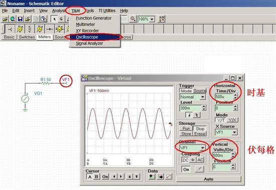 TINA-TI仿真时如何使用示波器查看信号波形?