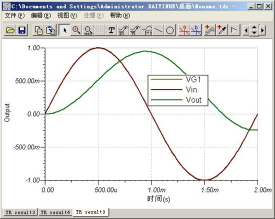 另外,在上面的波形图中,怎么调节Vin和Vout的幅值?