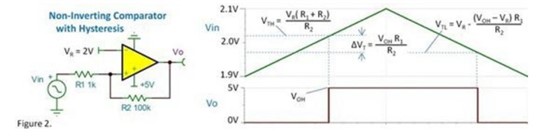 比较器在转换的过程经常会存在振荡?虽然有些比较器会内置一个迟滞电路来抑制振荡. 在设计应用中, 也适当的引入信号迟滞来减少振荡, 提高电路的稳定性