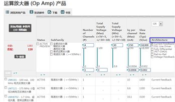 1.TI官网,在运放的产品目录页,可以通过architecture 来确定,