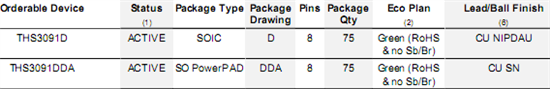 请问ths3091d和ths3091dda有什么区别啊,在用multisim仿真ths3091时没有ths3091,只有上面两款芯片,试问要用哪个啊?还是两个功用和ths3091一样?
