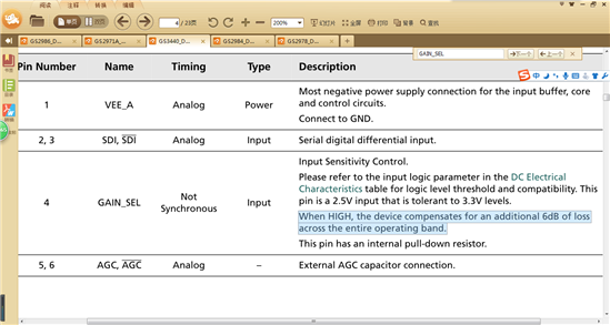 上面的两幅图是我们现在用的芯片GS2971A。主要作用是用于received,虽然 Integrated Adaptive Cable Equalize但是它的增益是不可调的,若果需要可调的增益的 Adaptive Cable Equalize,就必须加一个芯片,如下图,有6dB的增益