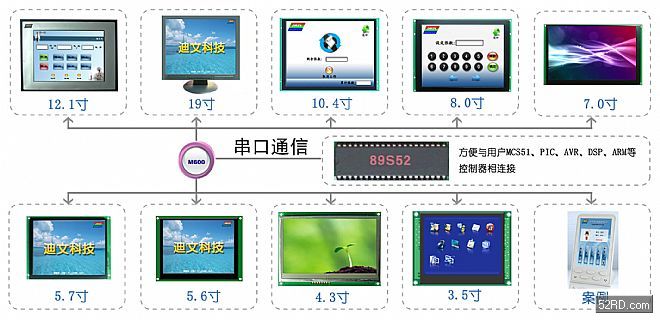 公司提供3.5-10.4寸系列真彩液晶终端,单片机,PLC,ARM串口直接控制,采用M600通用液晶显示驱动。