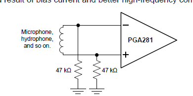 datasheet中的47Kohm是为了给输入偏置电流提供回流路径。您现在测试的结果是不加47Kohm就没问题是吗?