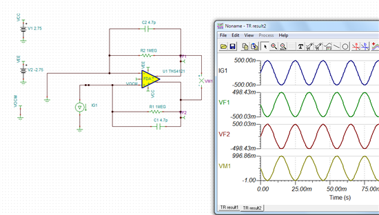 或者直接采用全差分运放,比如Iib在pA级的THS4121. 当然首先输出要满足ADC08D500的输入范围才行。 我用THS4121简单的举了个例子,可以参考下: