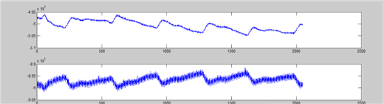 大家好!很抱歉又打扰大家了!在测量反射式波形的时候,我在GUI上得到的值这样的波形,然后我在SAVE界面保存了数据,到相应路径找到存放red-ambient和IR-ambient的Excel,将这两列数据用MATLAB显示出来,为什么我MATLAB显示的波形和GUI界面显示的波形差异这么大?请问这是怎么回事呢?谢谢!