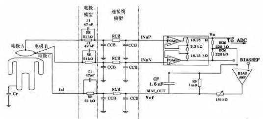 2.Bias drive signal的具体作用是什么?下图为datasheet中给出的参考电路,取1,2,3通道中的差模信号总和送到通道8的负端,是在是看不出这样处理到底有什么作用,还想请各位高人指点一二。