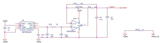前端放大电路?a href="http://www.ti.com.cn/product/cn/OPA2277" target="extwin">OPA2277+THS4521构成仪表放大电路后接入AD芯片,基准电压用Ref5025+OPA2350,具体如上图示